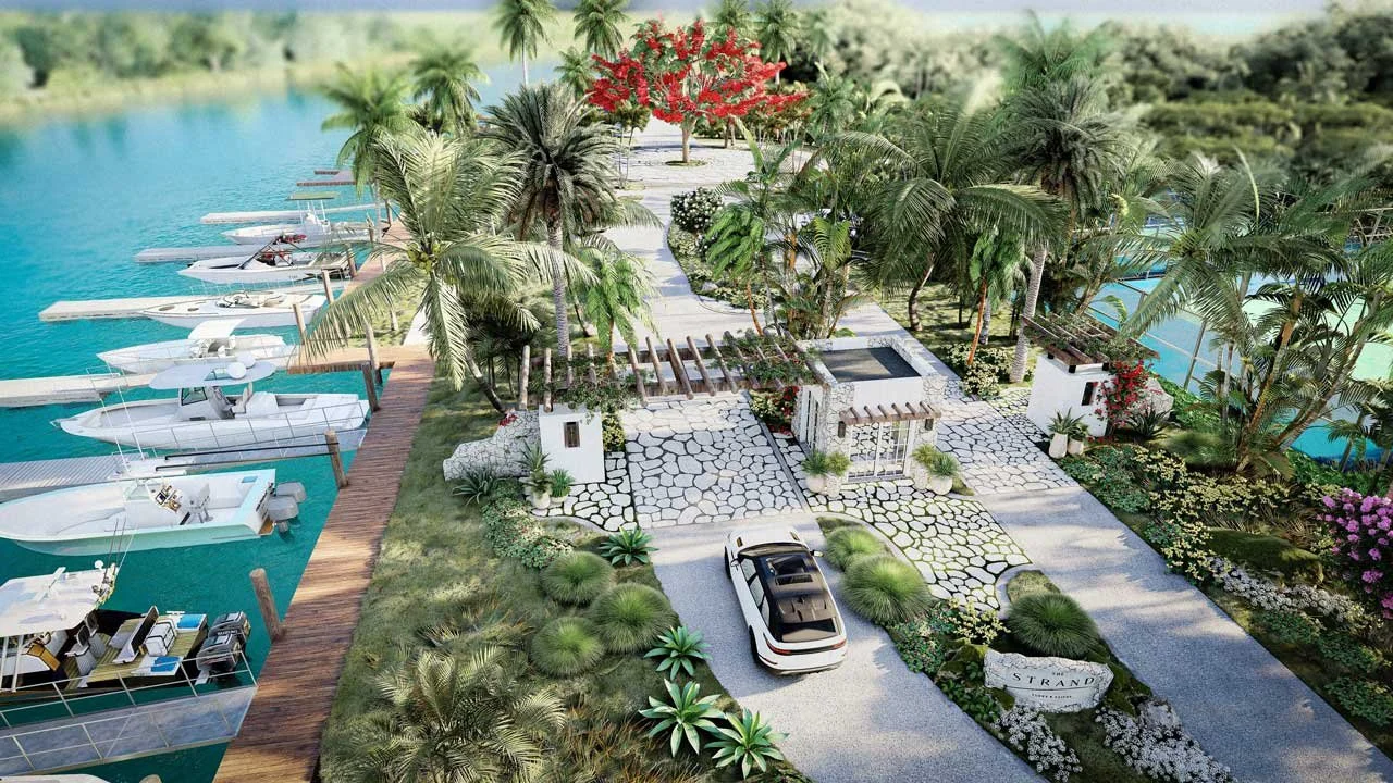 Opening in 2023, The Strand sits on an unspoiled stretch of coastline and is comprised of 46 beachfront villas, custom residences, and homesites. The development has 1,400 feet of canal and marina frontage and slips for owners. More highlights include a beach and tennis club, a water’s edge restaurant, a bar with a beachfront patio and garden, and a swimming pool surrounded by palm trees.