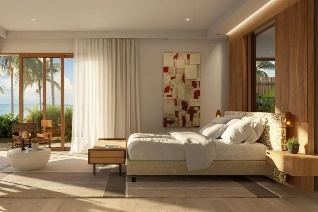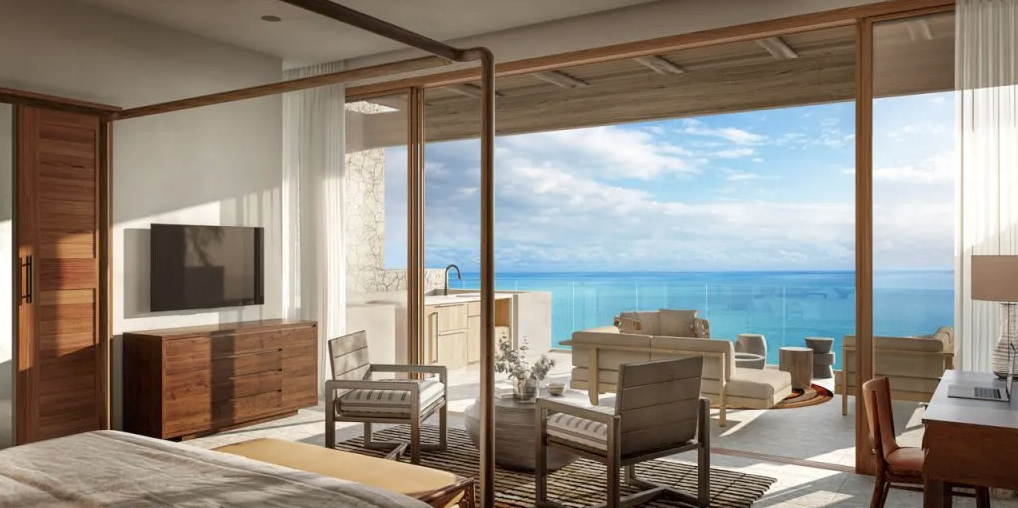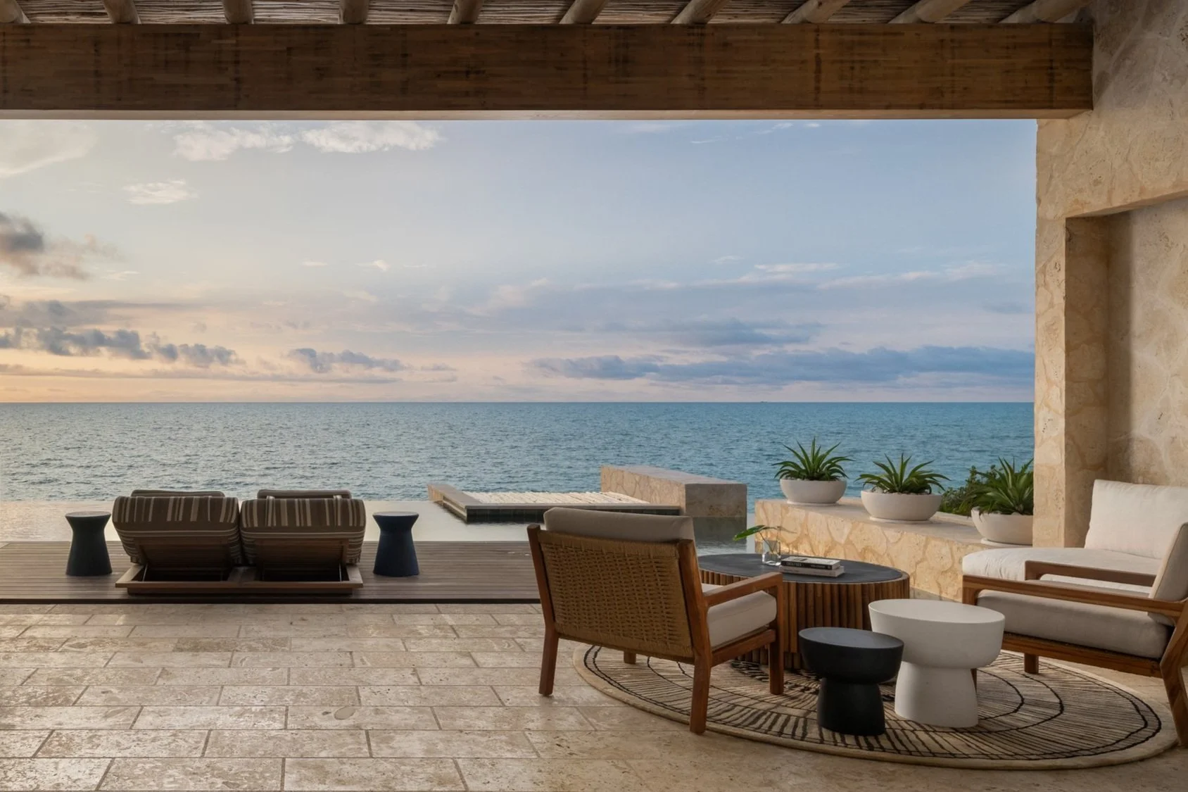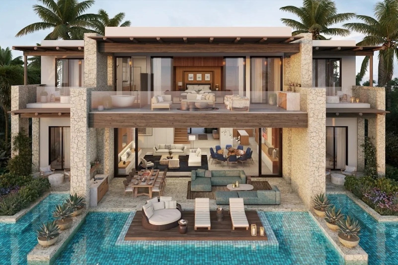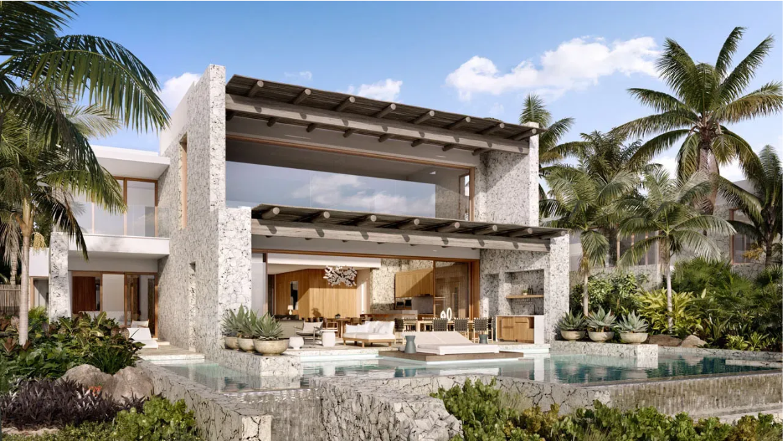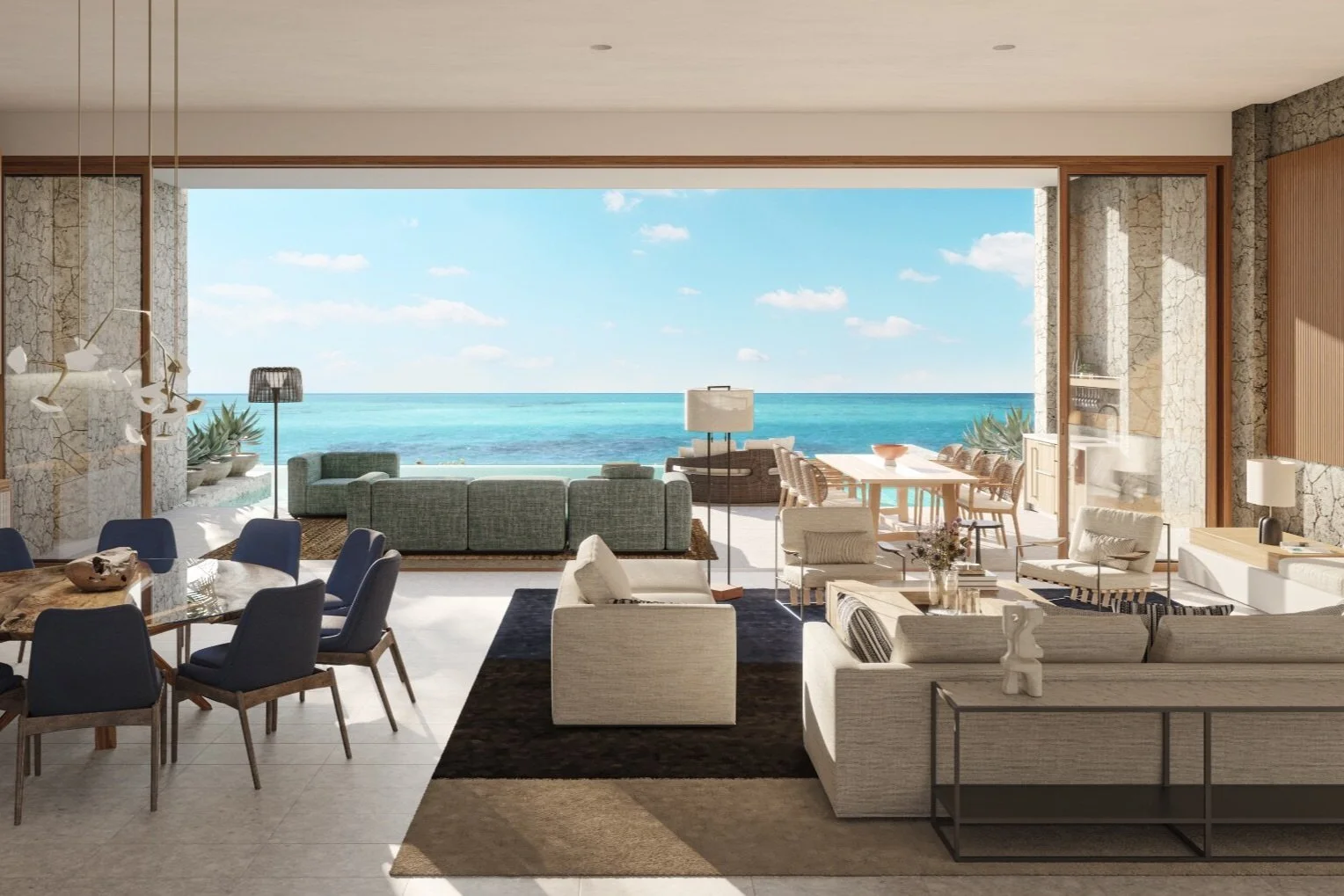 The luxury development has an estimated opening date of 2023. Each of the 40 villas and residences and six custom homesites sit above the water’s edge. R-4, as a grand residence, comprises a main house with five oceanfront, en-suite bedrooms, including a massive second-floor primary bedroom.